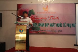 Ngày 04/3/2017, Hội Doanh nhân trẻ tỉnh Bình Định đã tổ chức chương trình Gặp mặt hội viên nhân ngày Quốc tế phụ nữ (8/3). Đến tham dự chương trình có đồng chí Lương Đình Tiên – Phó Bí thư Thường trực Tỉnh đoàn, Chủ tịch Hội Liên hiệp Thanh niên Việt Nam tỉnh và gần 40 anh/chị hội viên và vợ/chồng của các anh/chị hội viên.